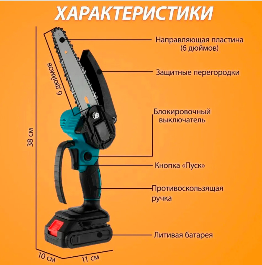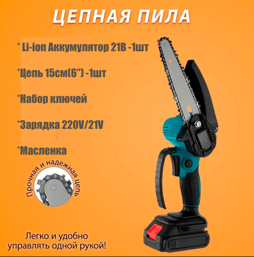 Бесщеточный мотор повышенной мощности,6 дюймовая цепь , Защитная планка, Легкий вес ок.1.5Кг,