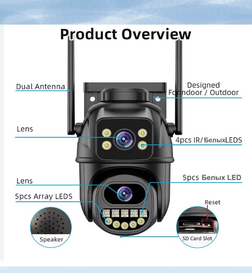 Тип камеры: WiFi PTZ купольная камера Разрешение: 2MP и 4MP